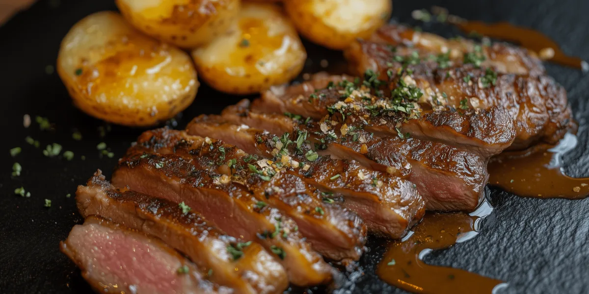 Stegning på en pande er en anden fantastisk måde at tilberede Iberico Bellota Pluma på, da du får den sprøde yderside og den møre, saftige inderside. Her er en simpel opskrift: