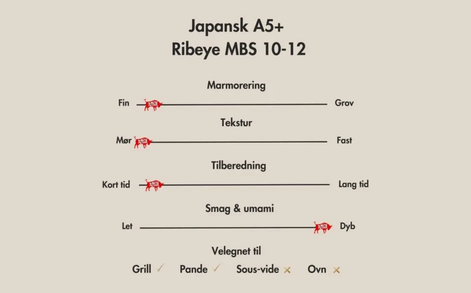 Findes der rent faktisk kød, der smelter på tungen? Ja, det er lige præcis, hvad der sker, når du prøver vores japanske A5+ wagyu MBS 10-12.