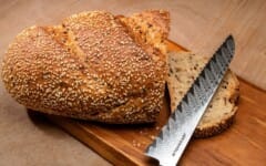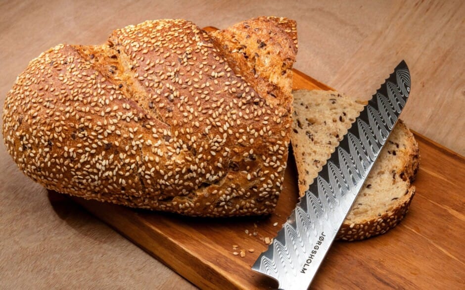 Vores brødkniv i 69-lags japansk rustfrit T-NI stål og med en hård T-NI kerne forener enestående funktionalitet med tidløst design – og med denne kniv har du aldrig set så stilet ud, mens du skærer et brød.